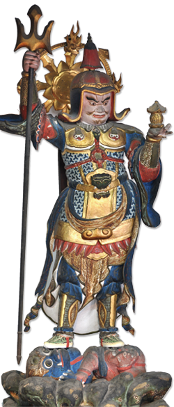 また、四天王の北方守護・多聞天としても有名で、名前の通り『すべてを聞きもらさない智慧」の功徳を持っておられます。この四天王最強の毘沙門天は、「軍神」として崇められ、足利尊氏や上杉謙信、当山開基の豊臣秀次公も熱心に信仰されました。