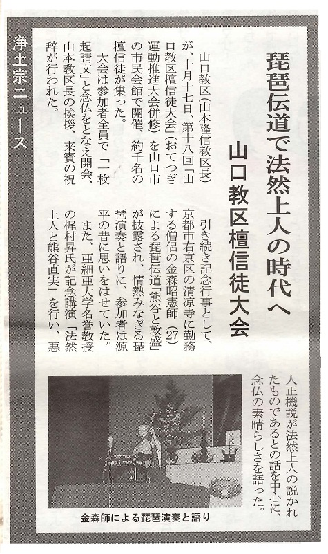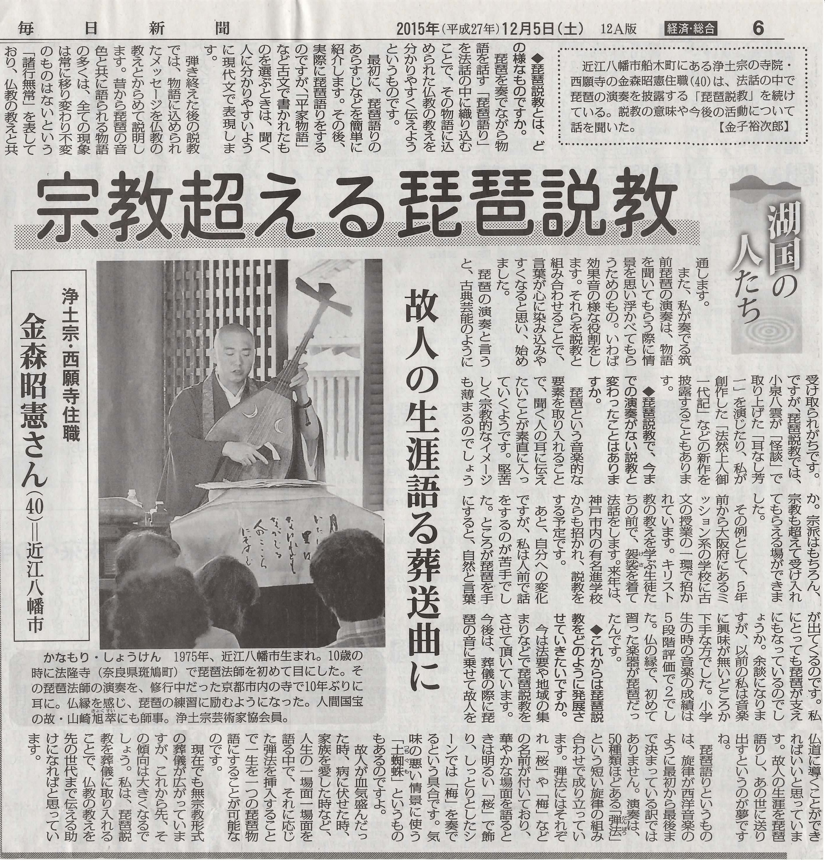 〔琵琶説教師 金森昭憲〕 浄土宗新聞 2003年1月号 教化団報 2003年4月20日記事 ほのぼの通信 2007年1月1日記事 讀賣とりびゅぬ 2007年2月21日記事 中外日報 2007年10月18日記事 京都新聞 2007年10月28日記事 京都新聞 2007年12月16日記事 ほのぼの通信 2008年1月1日記事 朝日新聞 2008年1月25日記事 中外日報 2008年5月1日記事 京都新聞 2010年5月29日付記事 寺門興隆 2011年2月号記事 国際グラフ 2012年5月号記事 浄土宗新聞 2012年12月号 京都新聞 2013年8月28日記事 勝林院一千年紀法要記念『千年響流』 2013年10月 朝日新聞夕刊 2013年11月27日記事 リビング滋賀 2013年12月21日記事 京都新聞 2015年2月15日記事